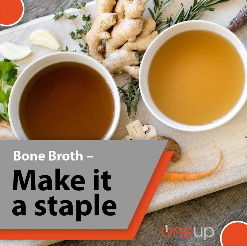 Bone broth contains lots of minerals + 17 different amino acids (proteins).